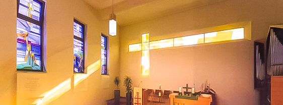 Wer sich in Wiesloch auf der Baiertaler Straße bewegt, wird auf der Höhe des AGAPLESION HAUS SILBERBERG fast unweigerlich auf ein besonderes Kreuz aufmerksam. Ein nach links eigentümlich verlängertes, kreuzförmiges Fenster durchschneidet eine Wand des Seniorenheims an der Baiertaler Straße 60. Dieser Blick von außen durch das Glasfenster der Kapelle fällt freilich nur durch die ungewohnte, meist dunkel erscheinende Verlängerung des Querbalkens auf. Die Verhältnisse kehren sich aber buchstäblich um, wenn man ins Innere der Kapelle tritt. Der überraschend asymmetrisch gestaltete Querbalken des Kreuzes weist nun nach rechts. Vor allem aber erscheint das gesamte Kreuz durch das hereinfallende Tageslicht als strahlendes Zeichen in Goldgelb und Weiß. Das helle und mächtige Element an der Wand der Kapelle kann so als Auferstehungskreuz interpretiert werden. Aber die immense Strahlkraft erfasst die Betrachtenden ganz unmittelbar und noch vor allen Deutungen.